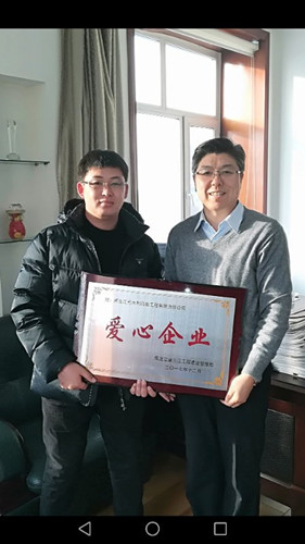 近日,從黑龍江省三江工程建設(shè)管理局傳來喜訊,我公司被授予“愛心企業(yè)”稱號(hào)。黑龍江省三江工程建設(shè)管理局黨委書記王波親自為我公司頒發(fā)了獎(jiǎng)牌,郭純寶同志代表公司參加了授牌儀式。
