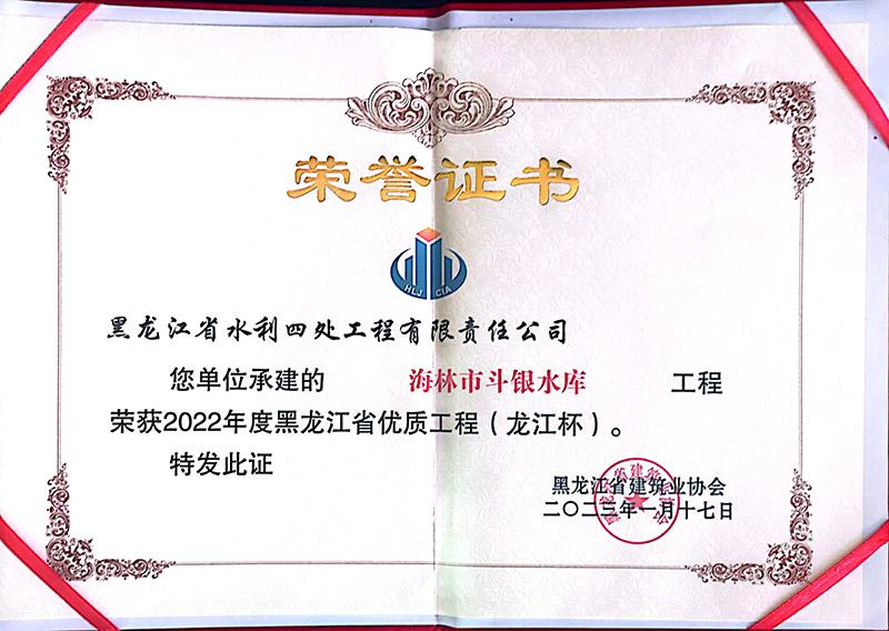 黑龍江省優(yōu)質(zhì)工程(龍江杯)獲獎(jiǎng)證書(shū)