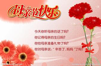 人不孝,不可交;人盡孝,品德高;愛母心,不可拋;報(bào)母恩,要勤勞。母親節(jié),要問好;康乃馨,真情表。你與我,多年交;母親在,樂陶陶!