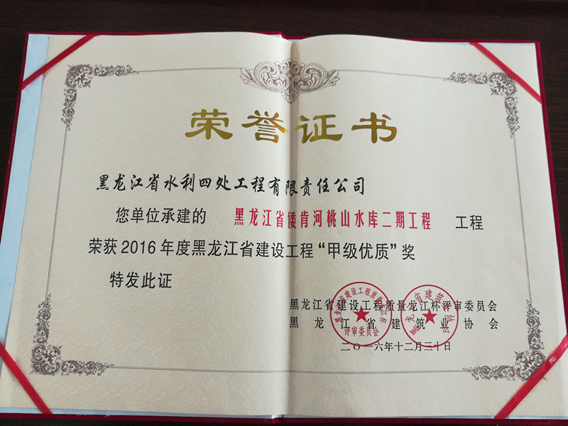 桃山水庫二期工程榮獲全省甲級優(yōu)質(zhì)工程
