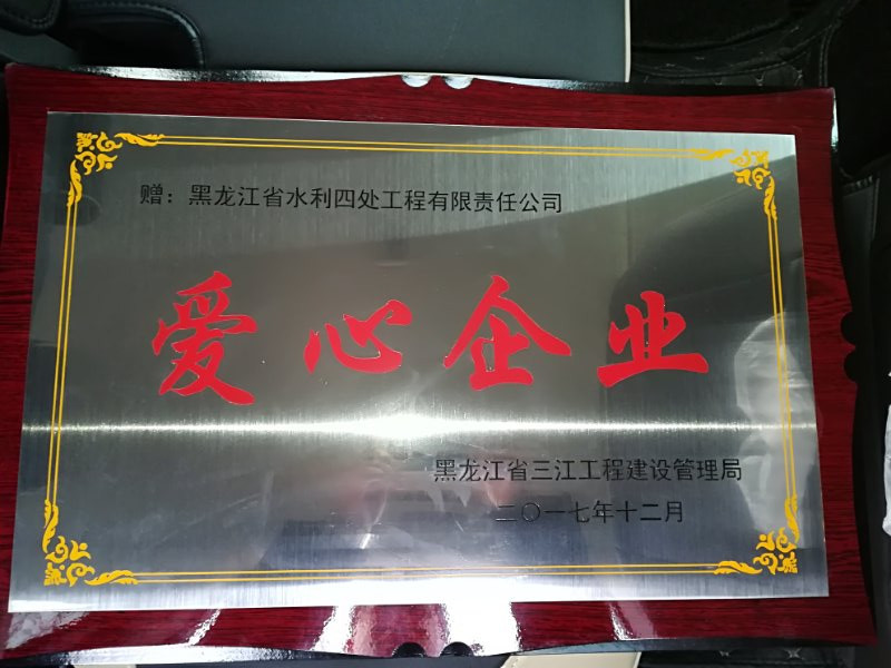 近日,從黑龍江省三江工程建設(shè)管理局傳來喜訊,我公司被授予“愛心企業(yè)”稱號(hào)。黑龍江省三江工程建設(shè)管理局黨委書記王波親自為我公司頒發(fā)了獎(jiǎng)牌,郭純寶同志代表公司參加了授牌儀式。