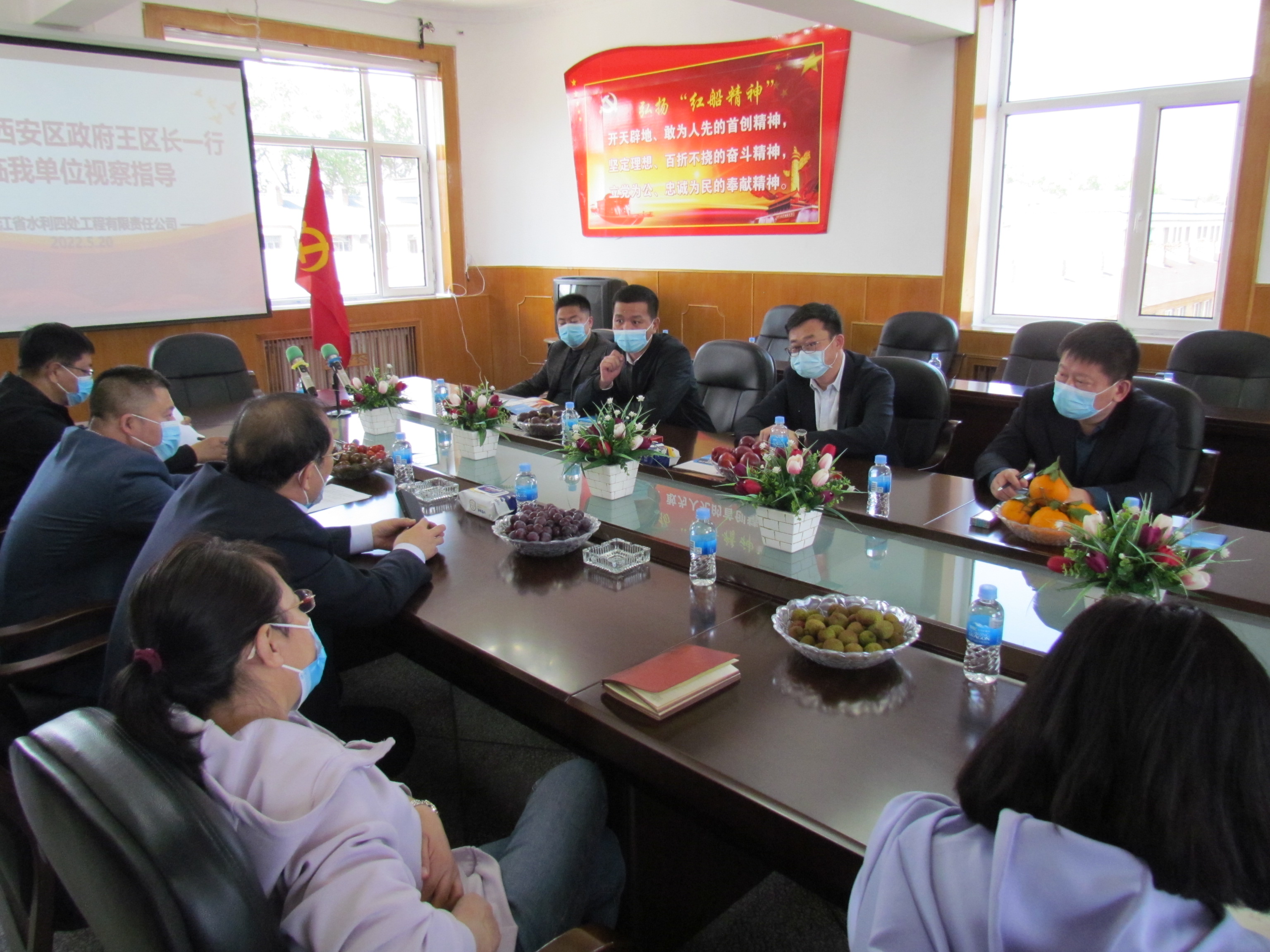 西安區(qū)政府區(qū)長(zhǎng)王雅罡來到我公司進(jìn)行工作調(diào)研,副區(qū)長(zhǎng)王玉石、區(qū)建設(shè)局長(zhǎng)于國(guó)強(qiáng)及區(qū)政府辦主任徐東海等領(lǐng)導(dǎo)陪同。